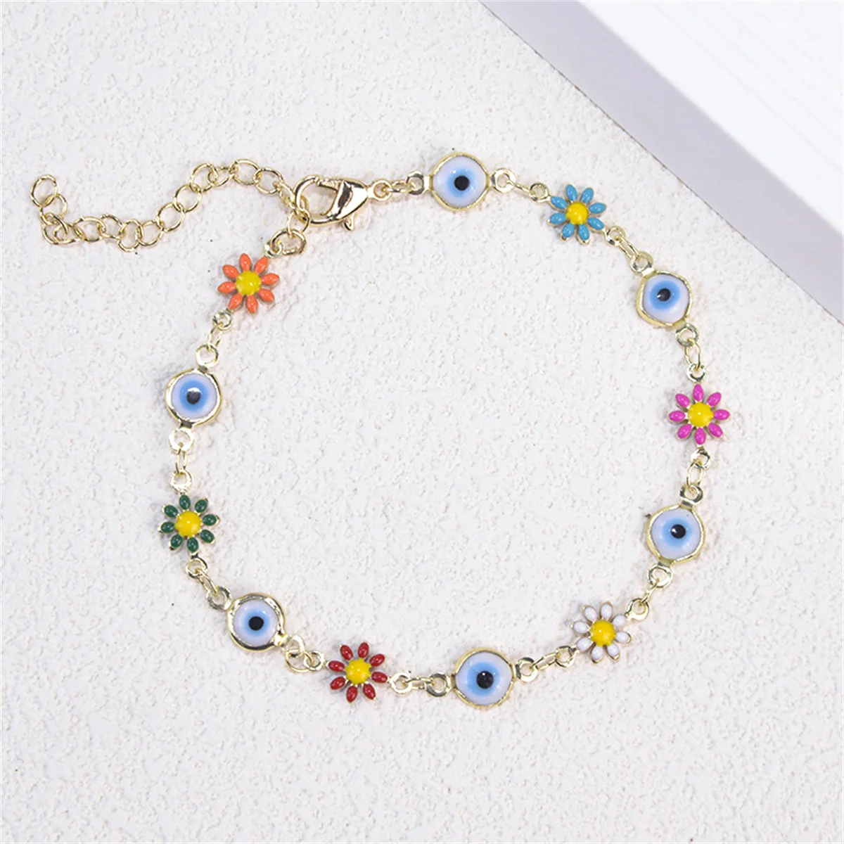 Vintage Bohemian Full Daisy Bracelet & Bangle Summer Fashion Flower Chain Charm Bracelet For Women Travel Wristband Jewelry