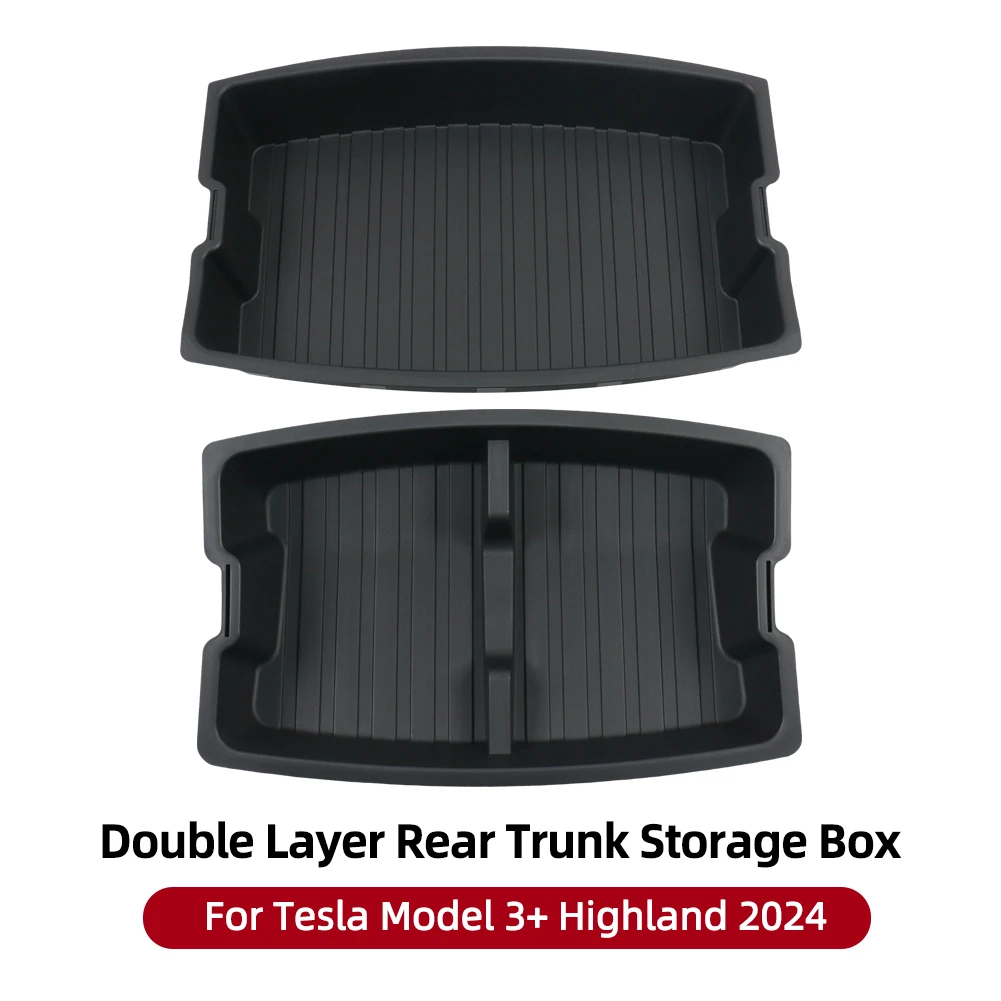 For Tesla Model 3 Highland 2024 Double-Layer Rear Front Trunk Storage Box Frunk Organizer Cargo Protective Tray Car Accessories
