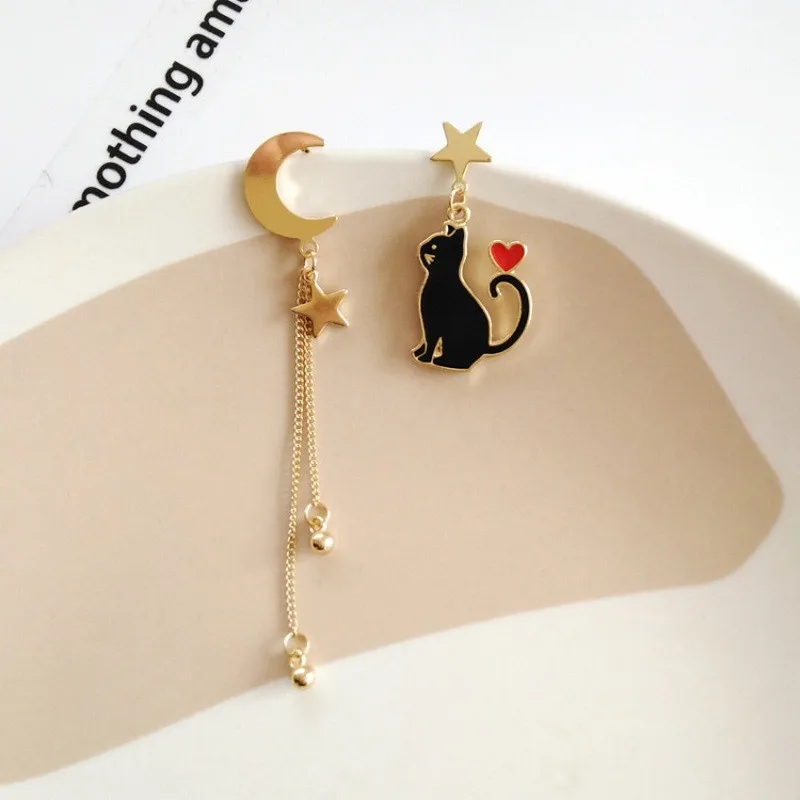 Fashion Cute Animal Kitten Leaf Dangle Earrings For Women Cat Rabbit Moon Flowers Asymmetrical Sweet Earring Girl Party Jewelry