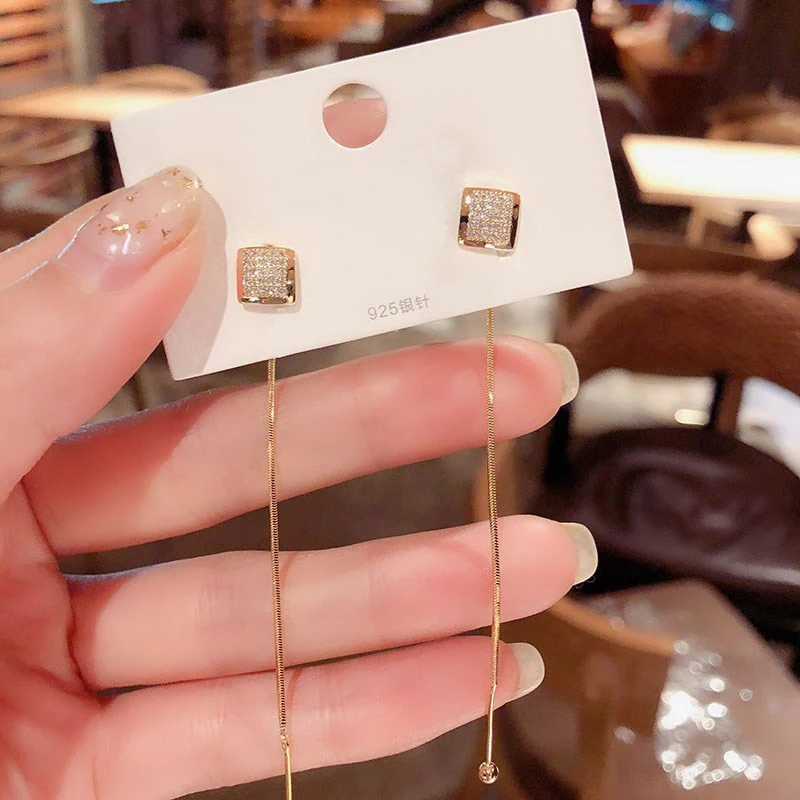 New Fashion Long Tassel Drop Earrings Korean Gold Color Geometric Flower Heart Hanging Women's Earrings Exquisite Jewelry Gifts