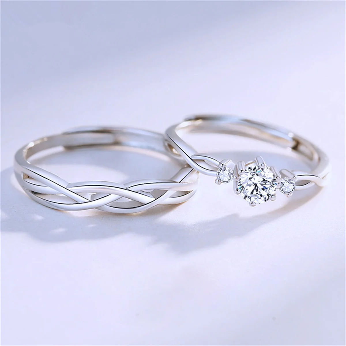 2Pcs/sets Zircon Heart Matching Couple Rings Set Forever Endless Love Wedding Ring For Women Men Charm Valentine's Day Jewelry