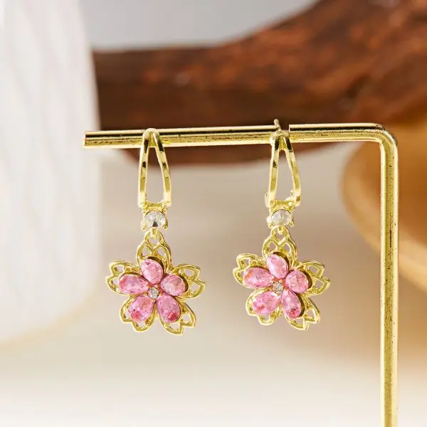 New Luxury Purple Zircon Flower Tassel Earrings For Women Shiny Crystal Sweet Cherry Blossom Earrings Fashion Girl Party Jewelry