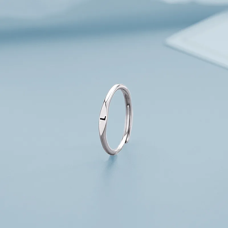 Minimalist Initials Ring A-Z 26 Letter Rings For Women Korean Simple Silver Plated Adjustable Finger Ring Birthday Jewelry Gift