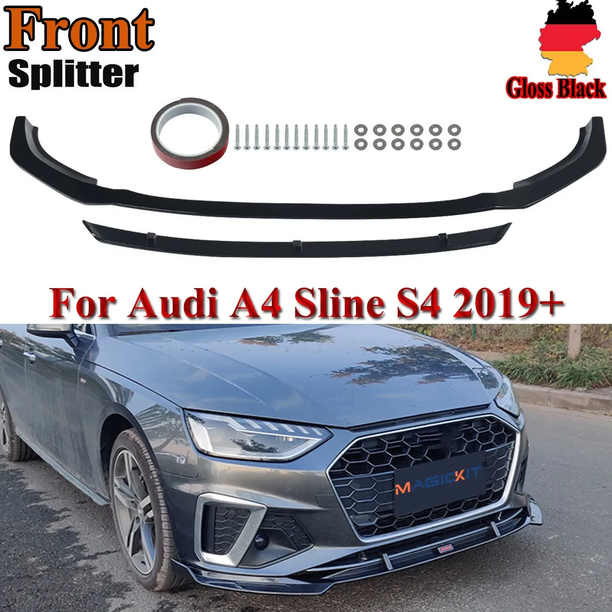 MagicKit Gloss Black Front Lip Splitter Spoiler For Audi A4 S4 S-LINE Saloon Avant 2019+