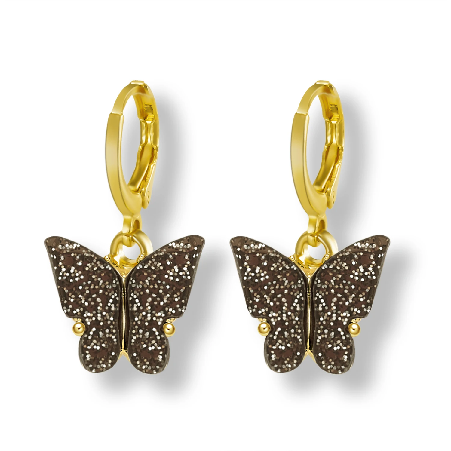 2021 Trendy Multi Color Butterfly Glitter Sequin Acrylic Alloy Drop Earring For Women Girls Unique Design Earring Jewelry Gift
