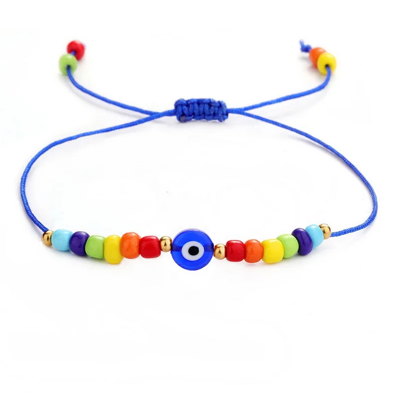 Charm Beads Evil Eye Bracelet for Couple Women Lucky Elephant Butterfly Palm Turkish Jewelry Crystal Friendship Rope Chain Gifts