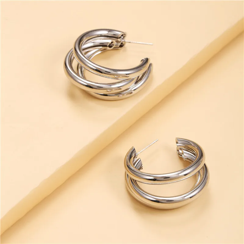 Vintage Fashion Geometric Half Round Circle Hoop Earrings for Women Girls Multi-layer Gold Color Earrings Party Jewelry Gift