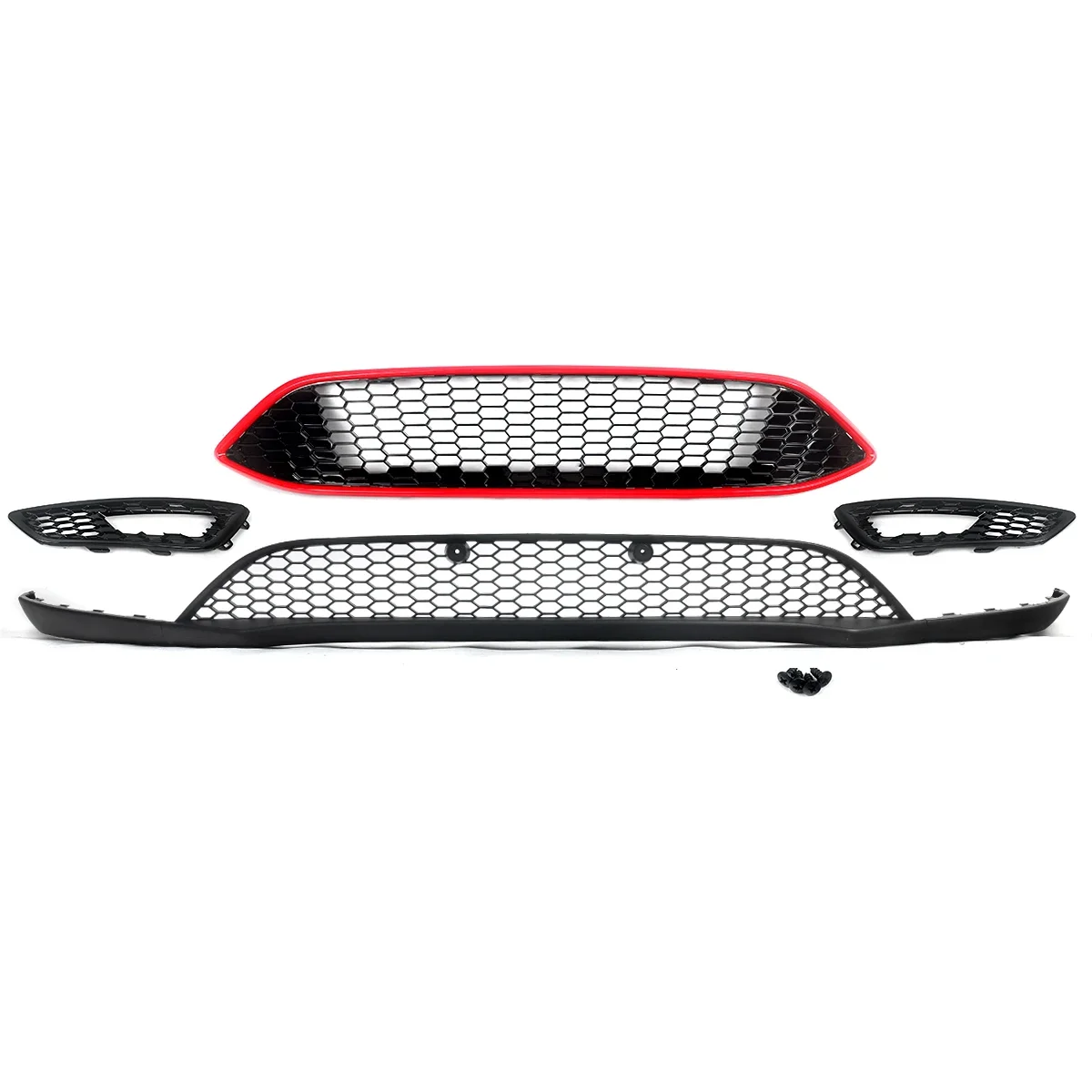 Set Front Bumper Grille +Valance Panel +Fog Light Cover For Ford Focus 2015-2018